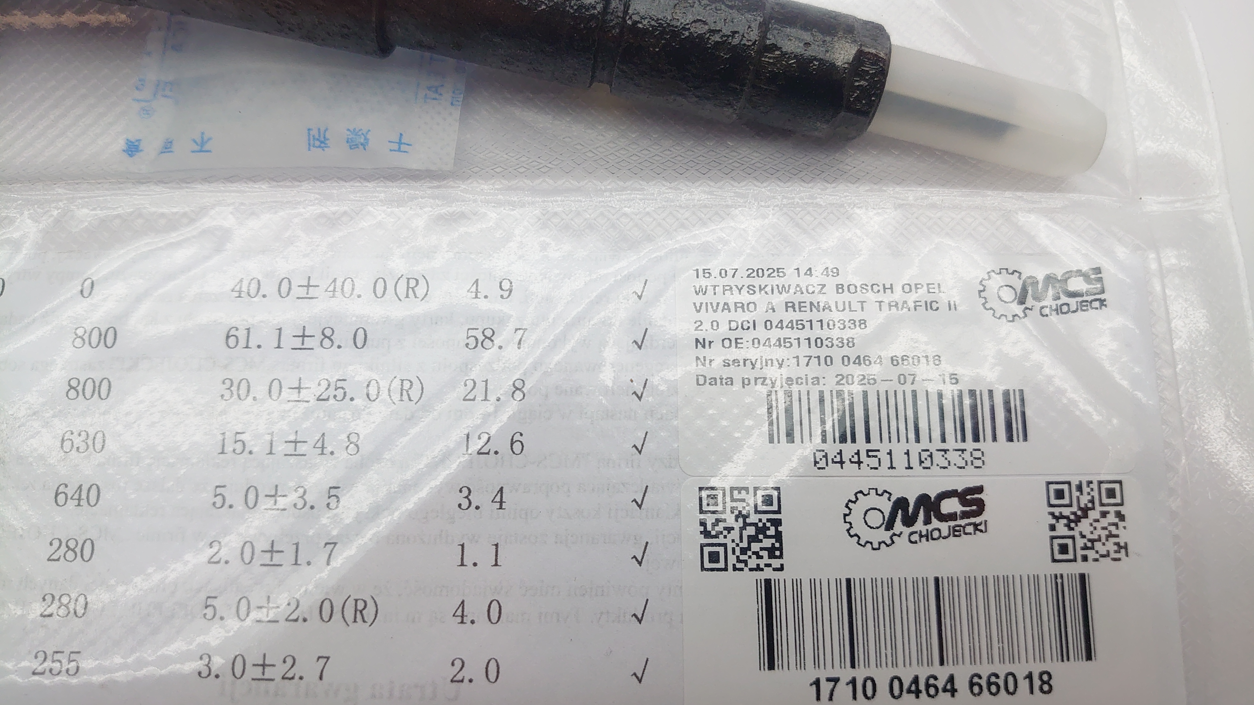 Numer katalogowy oryginału:0445110338