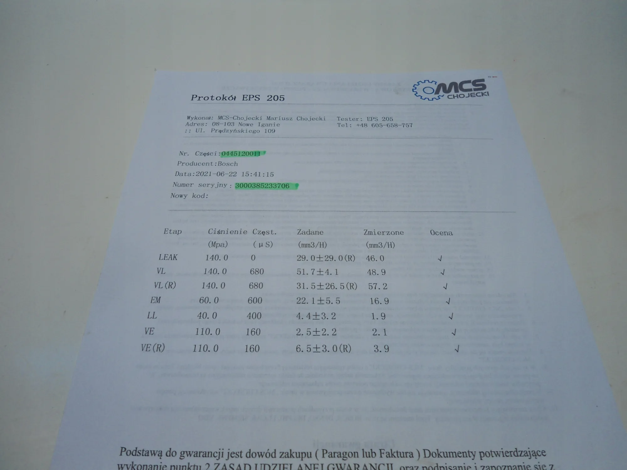 Gwarancja:Gwarancja rozruchowa