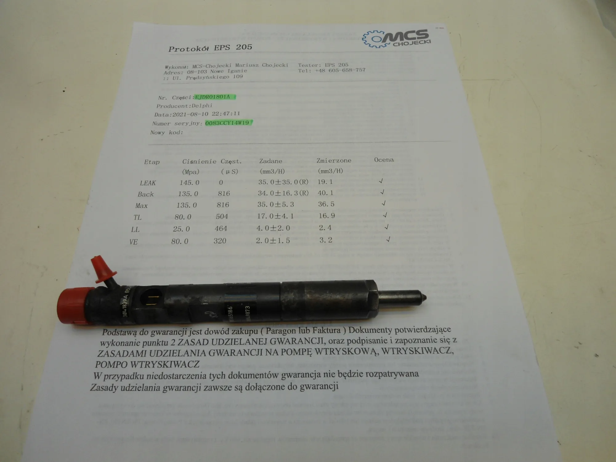 Wszystkie zdjęcia przedstawiają faktyczny stan wtryskiwacza. Części są znaczone przed wysyłką. Wszystkie części pochodzą z legalnego źródła , przechowywane szczelnie zamknięte w suchych magazynach , przez co nie są narażone na niekorzystne warunki atmosferyczne.